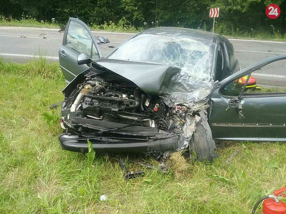 Galéria k článku Zrážka osobného auta s kamiónom: Cestu v okrese Prievidza uzavreli, FOTO