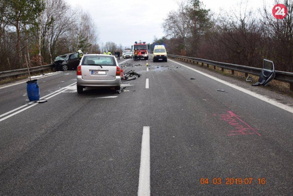 Galéria k článku Vážna nehoda pri Prievidzi: Čelná zrážka si vyžiadala troch zranených, FOTO