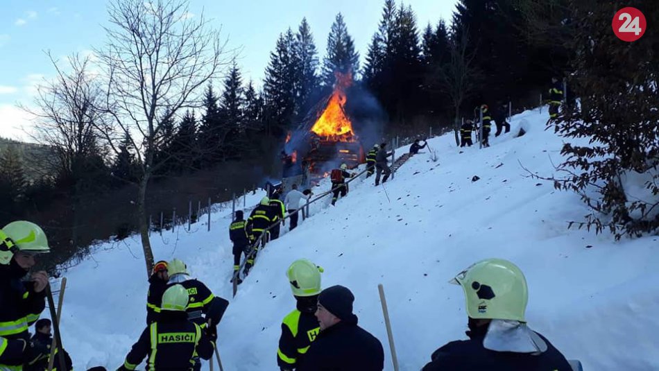 Galéria k článku Požiar chaty v Papradne: Profesionálom pomáhali aj dobrovoľní hasiči, FOTO