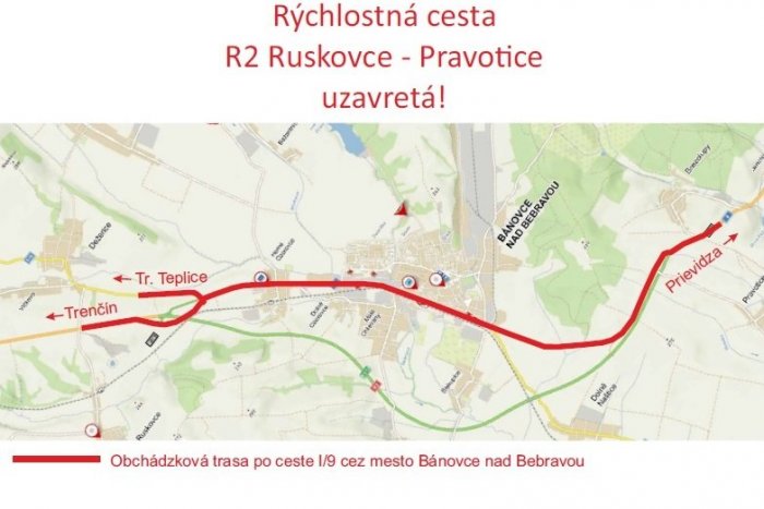 Obchádzka bude vedená po ceste I/9 cez mesto Bánovce nad Bebravou, pričom bude vyznačená dočasnými dopravnými značkami a dopravnými zariadeniami.